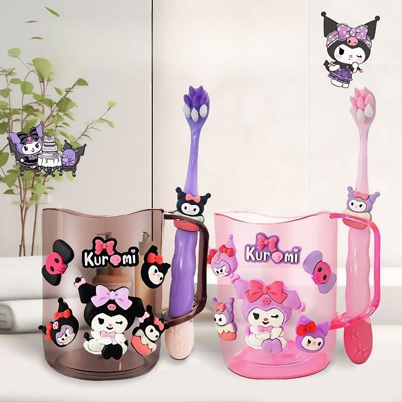 New kawaii Hello kitty children's mouthwash cup kuromi teeth jar brush cup My melody toothbrush holder Children's wash cup set
