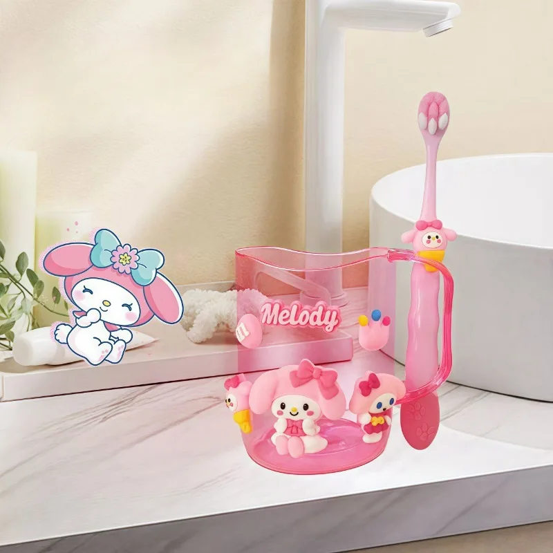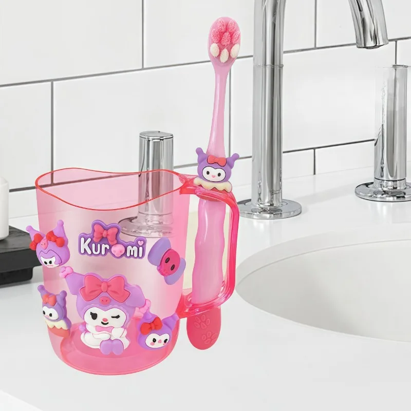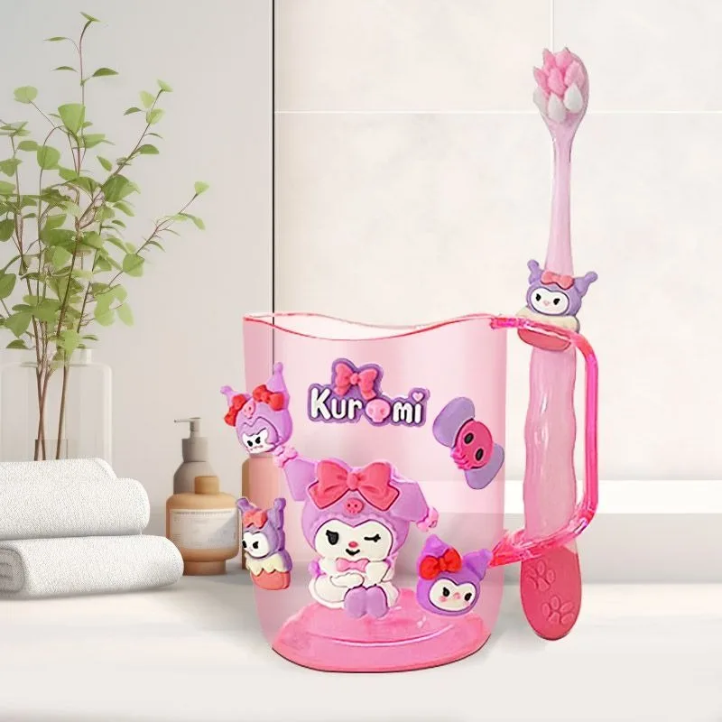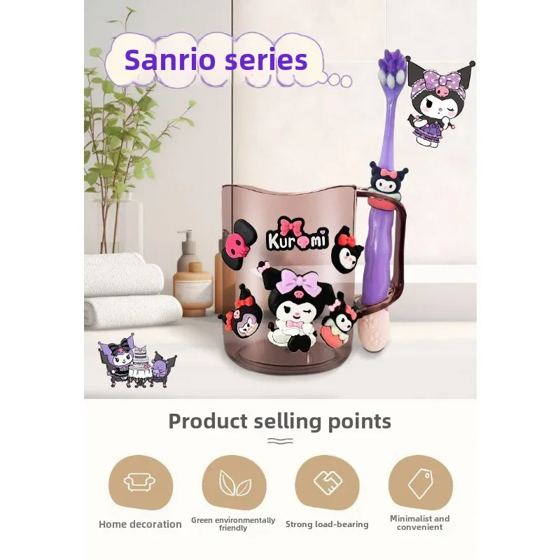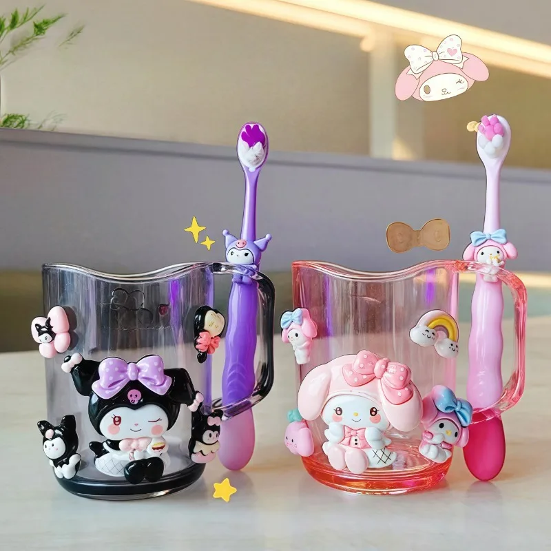 New kawaii Hello kitty children's mouthwash cup kuromi teeth jar brush cup My melody toothbrush holder Children's wash cup set