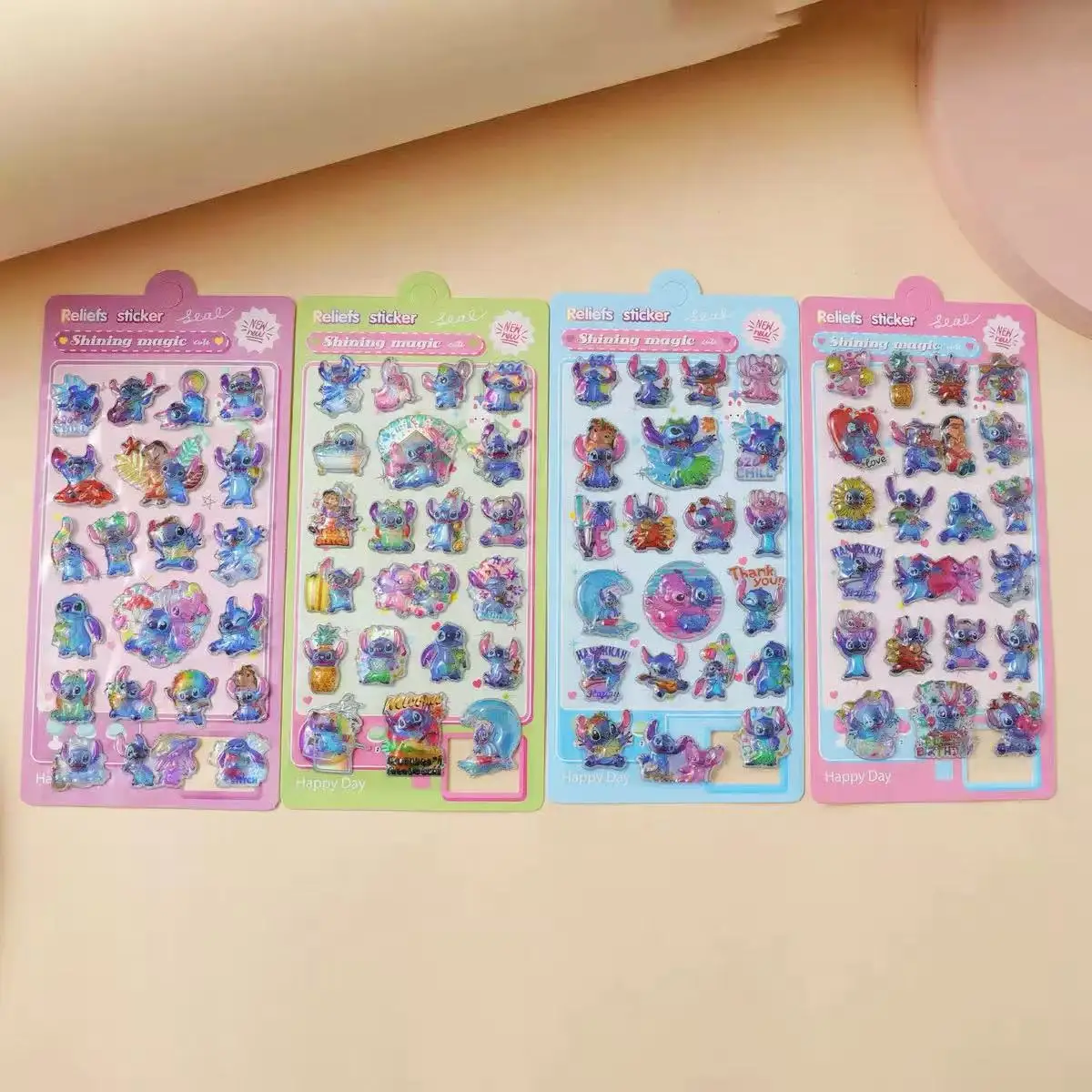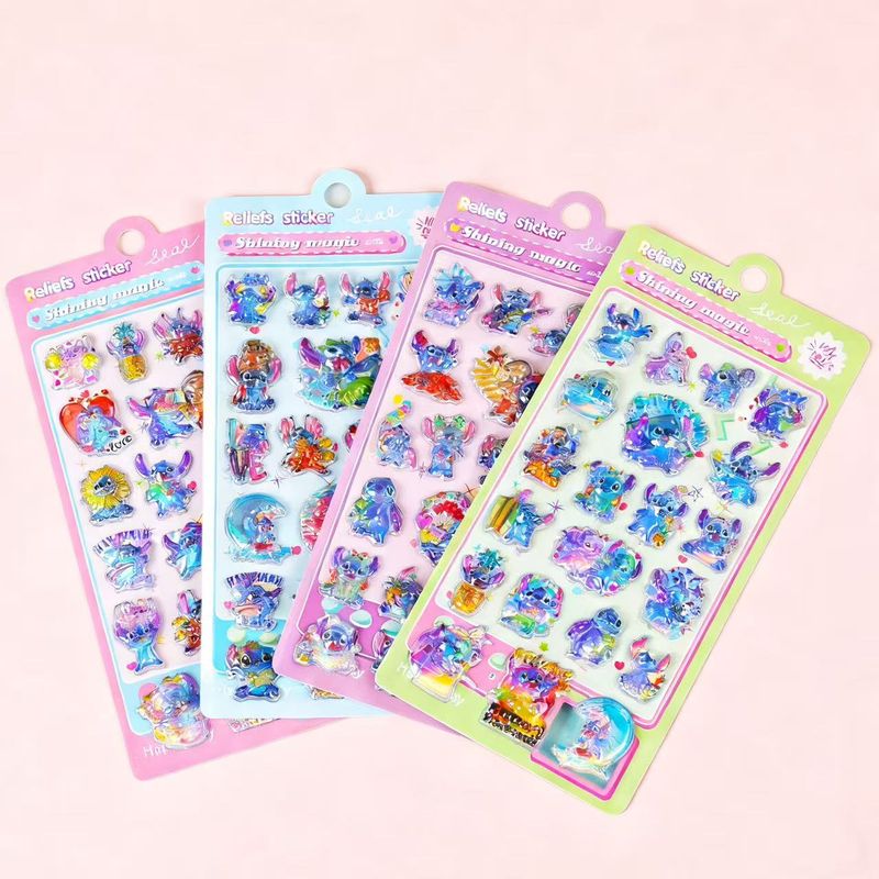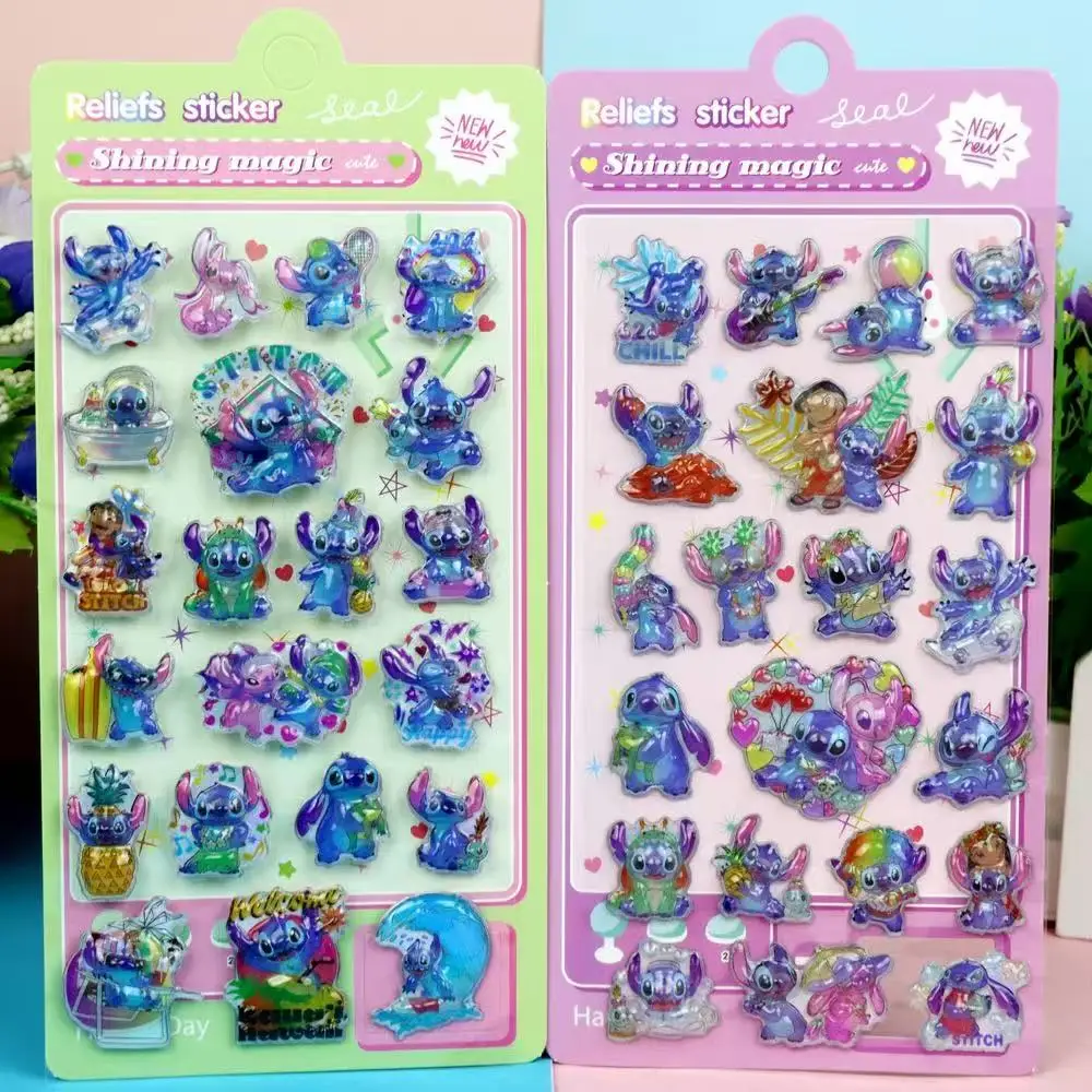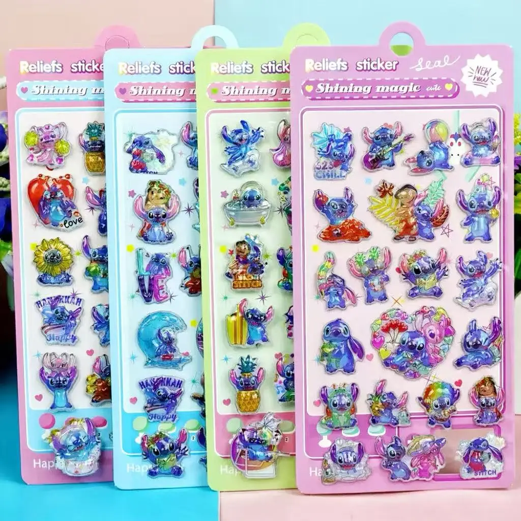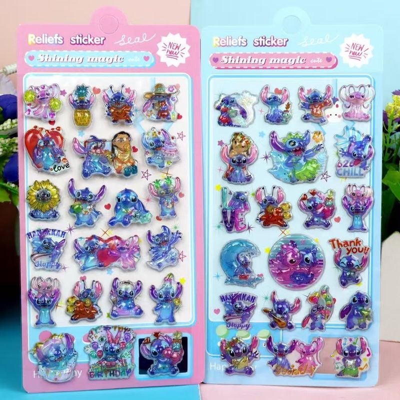 New Kawaii Stitch 3D laser embossed water drop sticker cartoon decorative sticker office stationery DIY