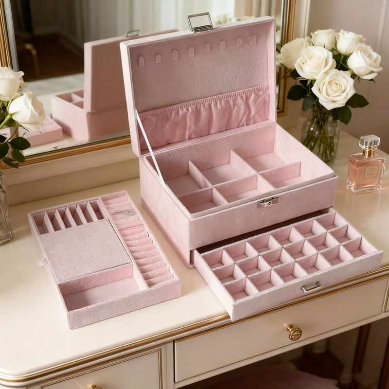 Available in rich shades like deep blue, black, and pink, this jewelry box adds a touch of elegance to any dressing table.