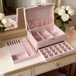 New large-capacity velvet jewelry box with three-drawer design, suitable for storing earrings, necklaces, and organizing jewelry