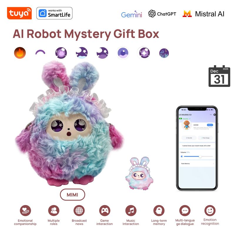 NEW LAUNCH! Mystery Box AI Plush Toy Perfect Gift|3in1|Smart Voice LED Eyes Interactive E-Pet Surprise|Rechargeable W/Tuya APP
