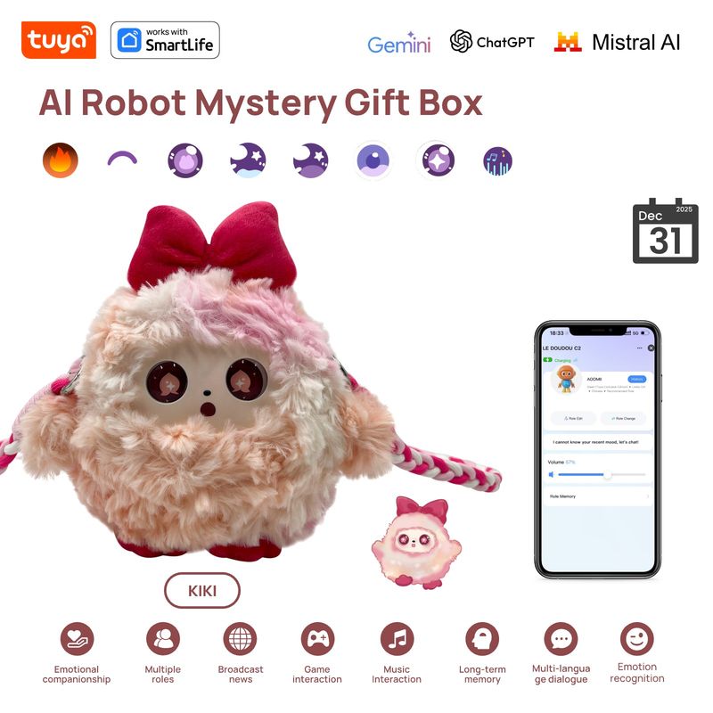 NEW LAUNCH! Mystery Box AI Plush Toy Perfect Gift|3in1|Smart Voice LED Eyes Interactive E-Pet Surprise|Rechargeable W/Tuya APP