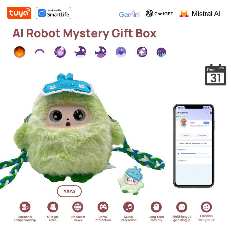 NEW LAUNCH! Mystery Box AI Plush Toy Perfect Gift|3in1|Smart Voice LED Eyes Interactive E-Pet Surprise|Rechargeable W/Tuya APP