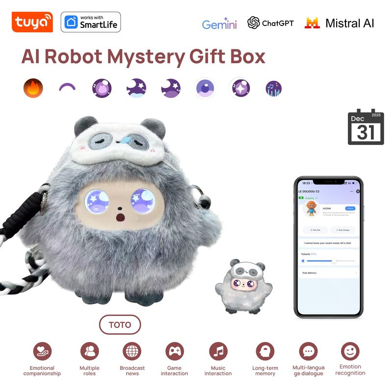 NEW LAUNCH! Mystery Box AI Plush Toy Perfect Gift|3in1|Smart Voice LED Eyes Interactive E-Pet Surprise|Rechargeable W/Tuya APP