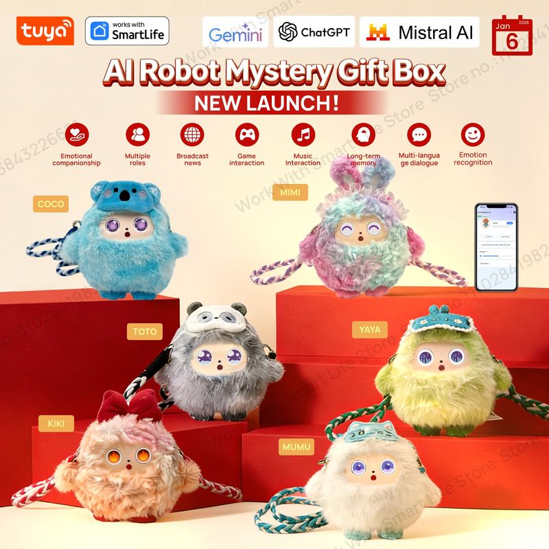NEW LAUNCH! Mystery Box AI Plush Toy Perfect Gift|3in1|Smart Voice LED Eyes Interactive E-Pet Surprise|Rechargeable W/Tuya APP