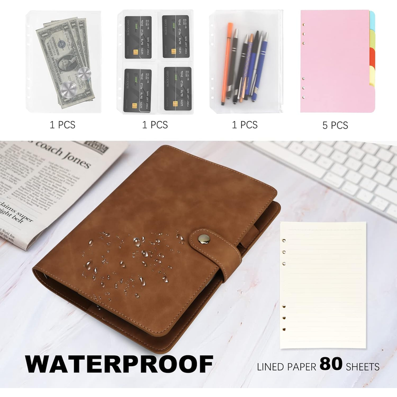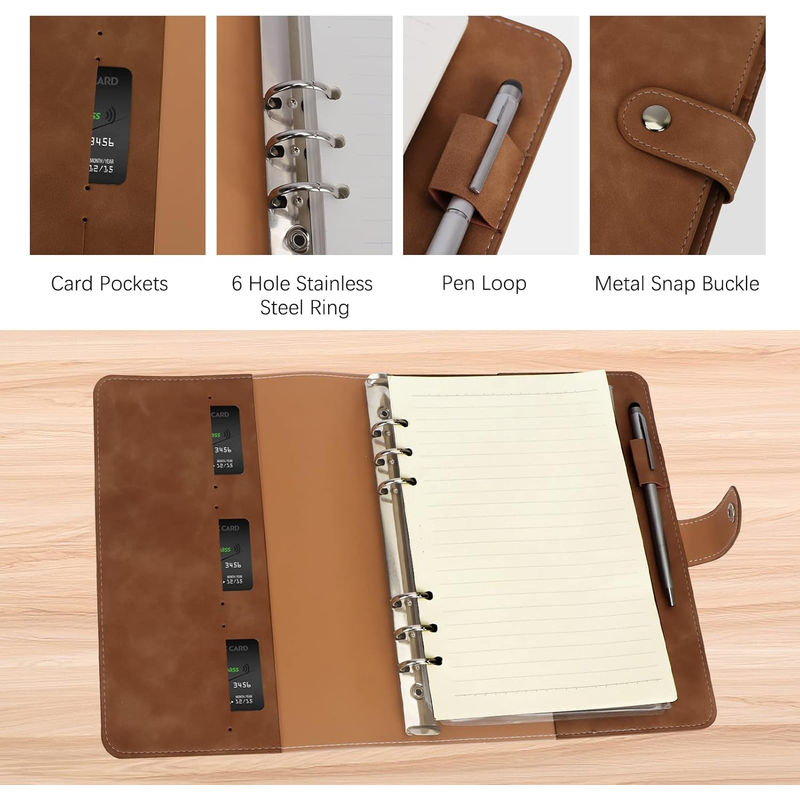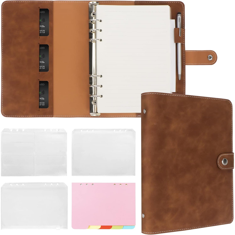 New Leather A5 Binder 6 Ring Binder Notebook - PU Leather Refillable Notebook with Binder Pockets, Dividers, Refill Paper