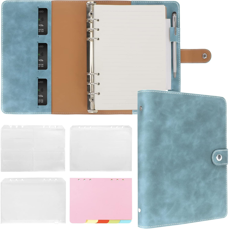 New Leather A5 Binder 6 Ring Binder Notebook - PU Leather Refillable Notebook with Binder Pockets, Dividers, Refill Paper