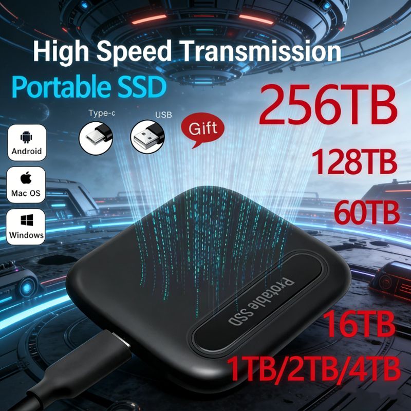 Specifications: Color: Black Material: Aluminum alloy+plastic Interface: USB3.1/Type-C interface Available format: ExFAT Product size: 7.5*5.5*1CM Compatible with: mobile phone/desktop/notebook Applicable system: windows 7,8,10,11 and mac os Android Storage temperature: 0℃~40℃ The package: 1:Mobile hard disk * 1 2:Original USB data cable * 1