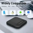 Specifications: Color: Black Material: Aluminum alloy+plastic Interface: USB3.1/Type-C interface Available format: ExFAT Product size: 7.5*5.5*1CM Compatible with: mobile phone/desktop/notebook Applicable system: windows 7,8,10,11 and mac os Android Storage temperature: 0℃~40℃ The package: 1:Mobile hard disk * 1 2:Original USB data cable * 1