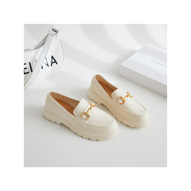 New Loafers British Style Retro Small Gold Buckle Round Head PVC One Pedal