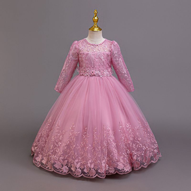 New Long Sleeve Elegant Dress for Young Girls Flower Girl Wedding Dresses Lace Formal White Clothes From 4 to12 Years