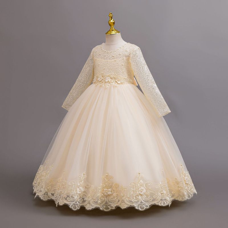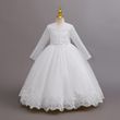 New Long Sleeve Elegant Dress for Young Girls Flower Girl Wedding Dresses Lace Formal White Clothes From 4 to12 Years