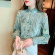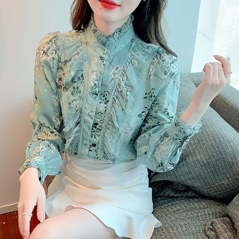 New Long Sleeve Floral Ruffled Women's Fashion Shirt Green 2XL