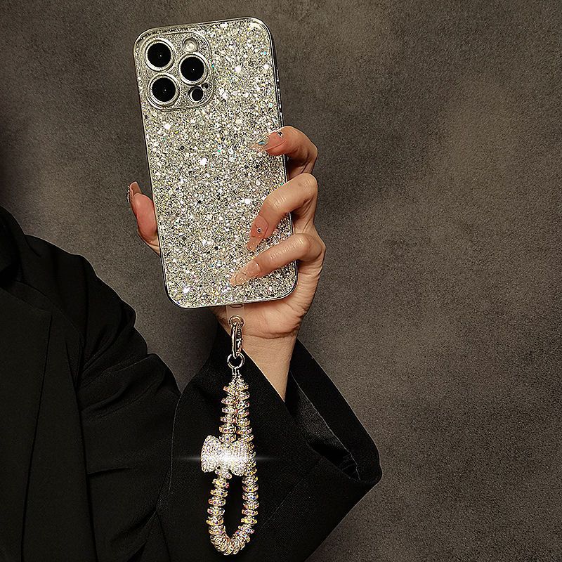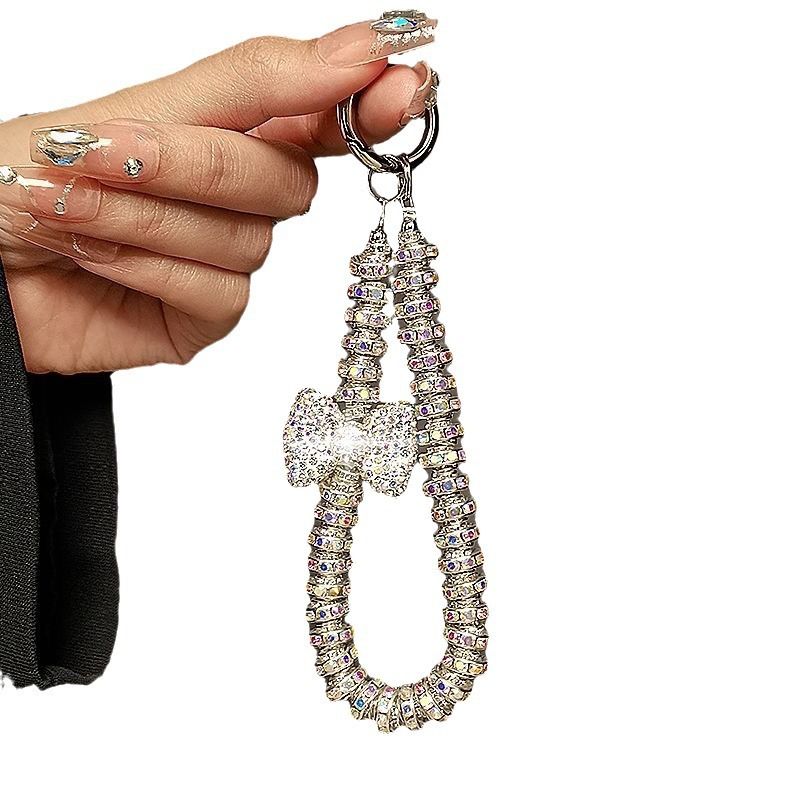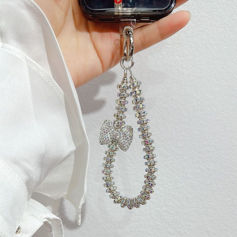 New Luxury Sparkling Diamond Bow Phone Chain Handheld Wrist Strap Short Wristband Chain Anti Loss Pendant Hanging Rope Universal