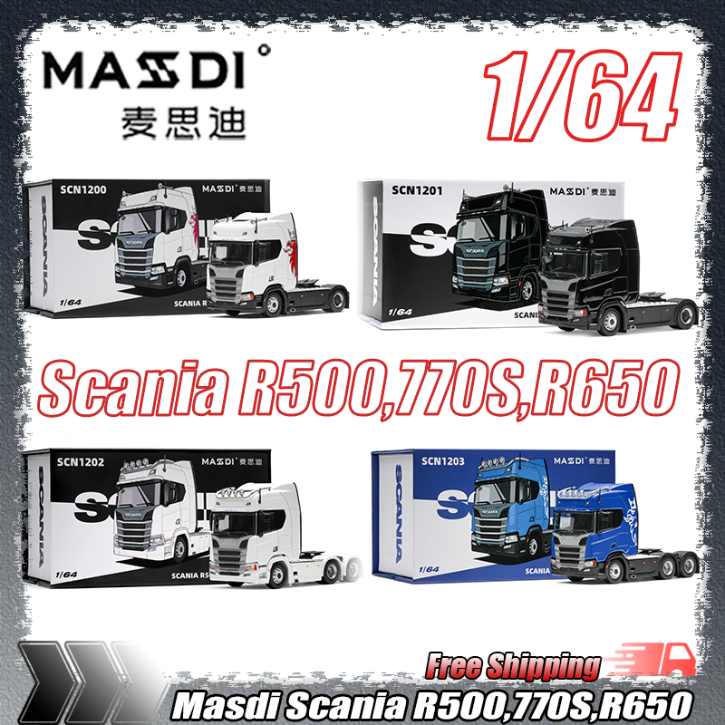 New Masdi 1:64 Scania R500 770s R650 Civilian Trailer Transport Vehicle Alloy Small Model Miniature Die-Cast Custom Kid Toy Gift
