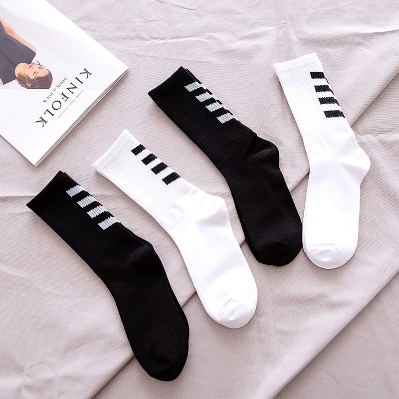 New Men Crew Socks Fashion Cotton Black White Stripe Sports High Skateboard Blaze Street Happy Long Sox mens calcetines Soks