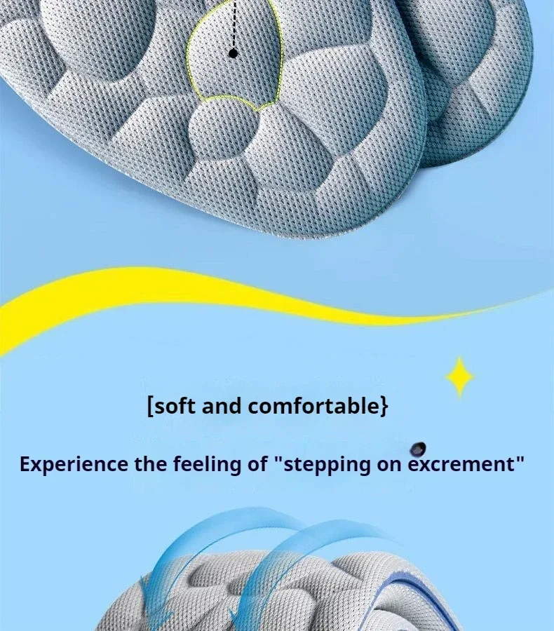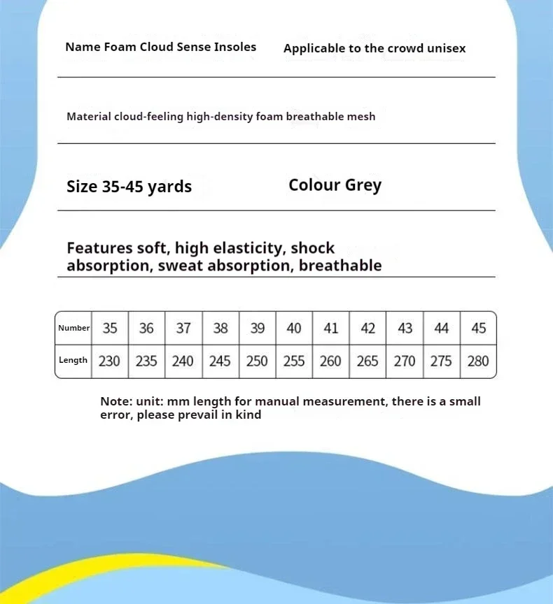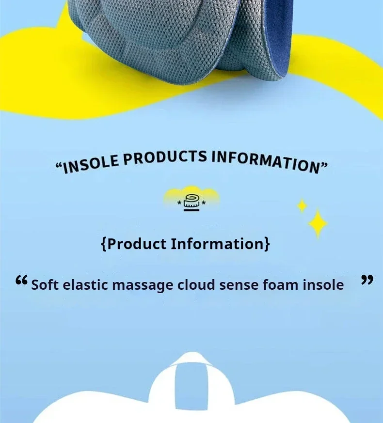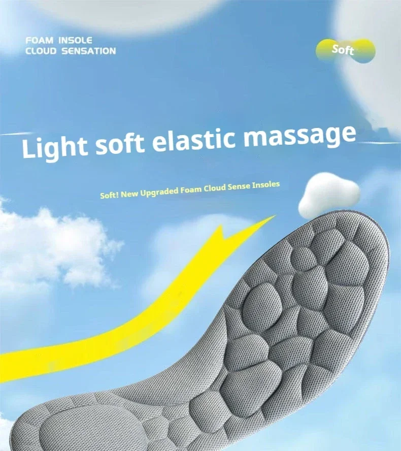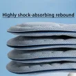 The insole is equipped with a high elasticity air cushion unit, which can feel a gentle rebound like walking in the clouds every time you step on the ground, effectively absorbing the ground reaction force, reducing foot impact, and protecting joints from injury. Long term walking or standing can also maintain light footsteps and reduce fatigue.