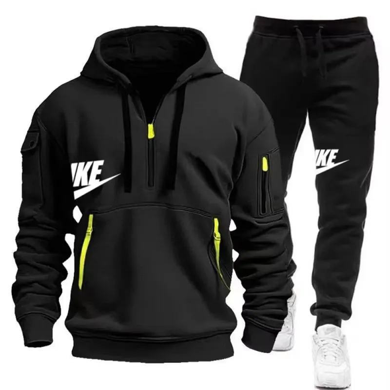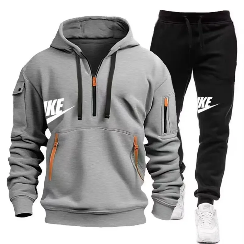 New men's autumn and winter suit zipper hoodie + trousers suit casual men's sportswear warm suit
