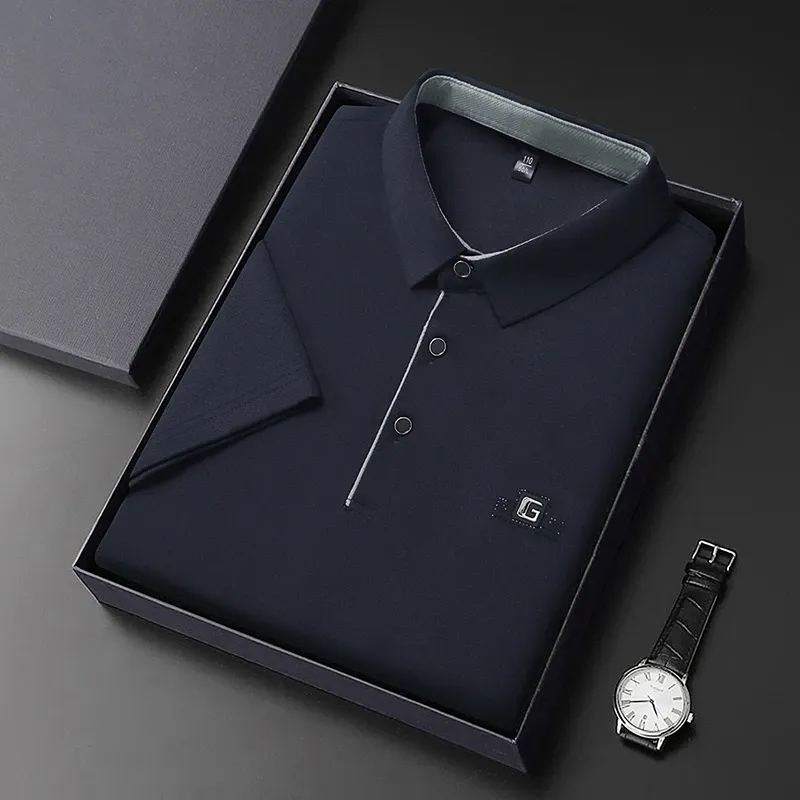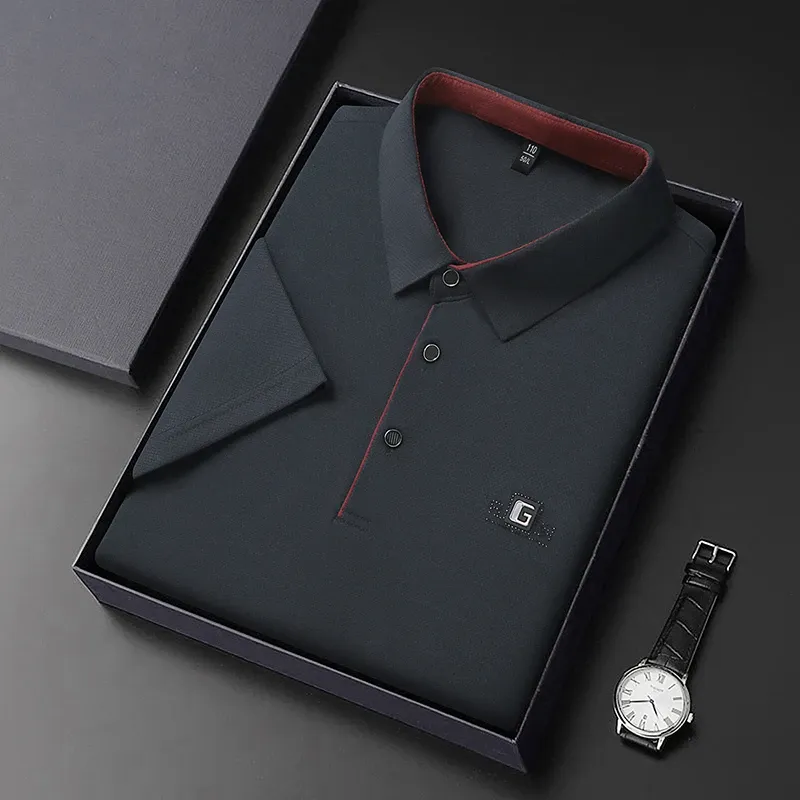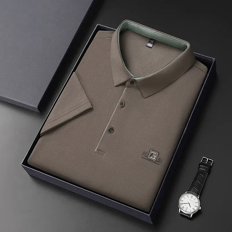 New Men's Business Casual Short Sleeved Shirt with Badge Solid Color Polo Shirt Fashionable Breathable Comfortable Versatile Top