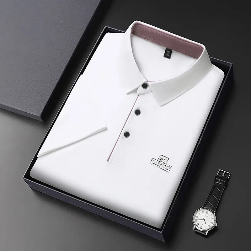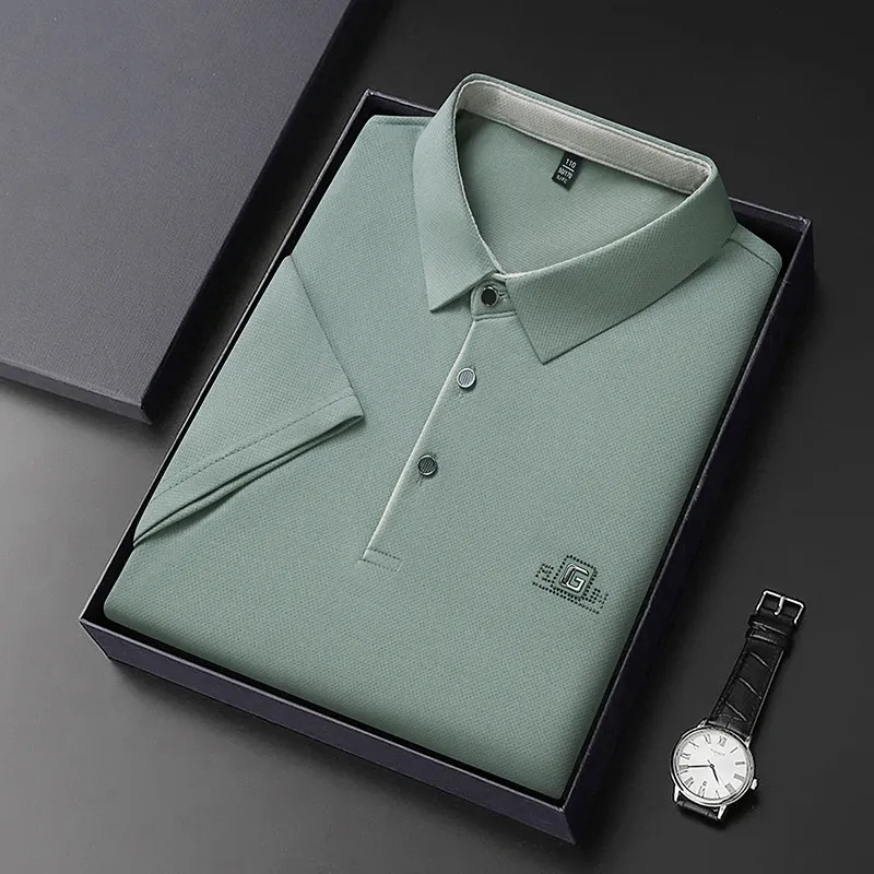 New Men's Business Casual Short Sleeved Shirt with Badge Solid Color Polo Shirt Fashionable Breathable Comfortable Versatile Top