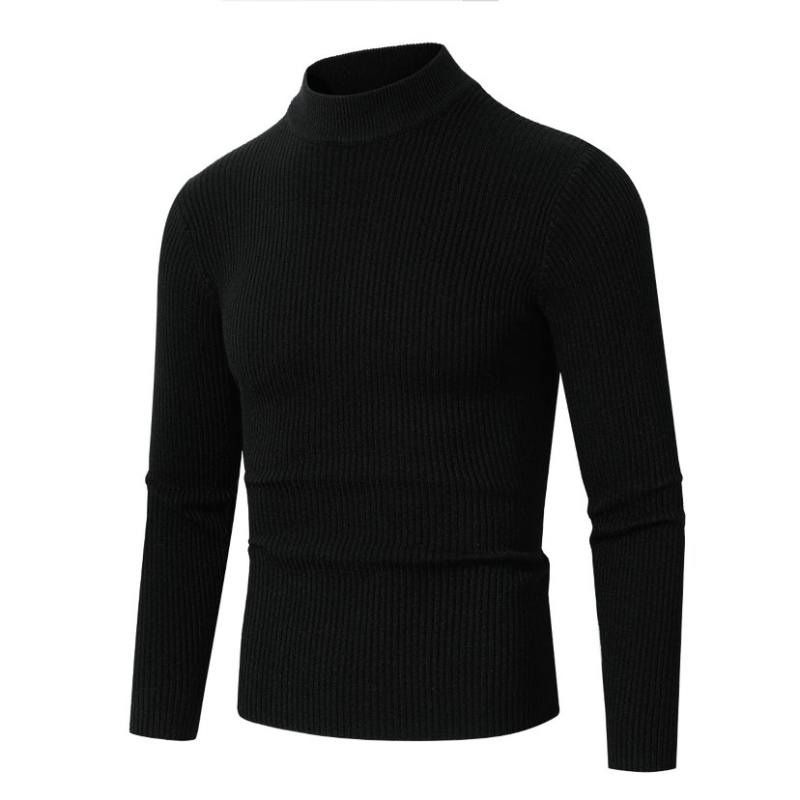 New Men's Fashion Mock Turtleneck Sweaters Long Sleeve Waem Pullover Sweater Winter Slim Fit Stripes Basic Knitted Outdoor wear