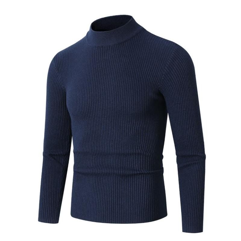 New Men's Fashion Mock Turtleneck Sweaters Long Sleeve Waem Pullover Sweater Winter Slim Fit Stripes Basic Knitted Outdoor wear