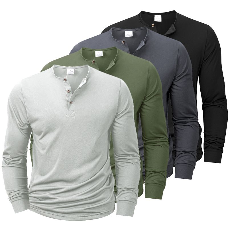 New Men's Henley T-shirts Long Sleeve Basic Casual Band Collar T Shirts Comfortable Soft Pullover Tops Male Tee