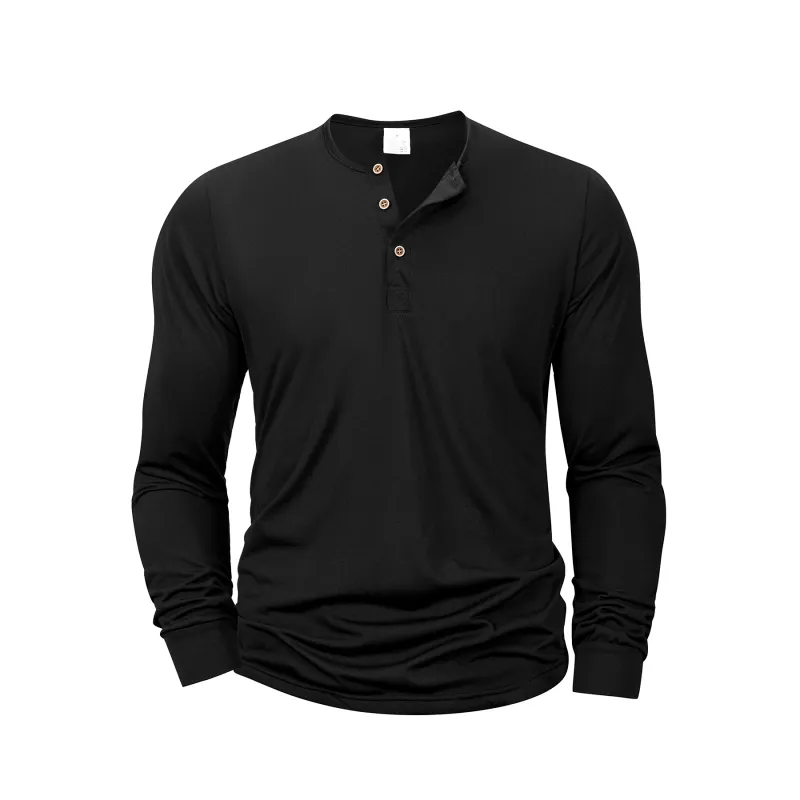 New Men's Henley T-shirts Long Sleeve Basic Casual Band Collar T Shirts Comfortable Soft Pullover Tops Male Tee