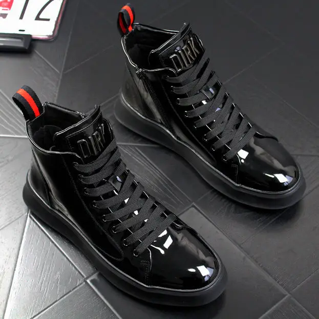 New Men's High-Top Board Versatile Casual Leather Ankle Platform Hight Increasing Youth Boots