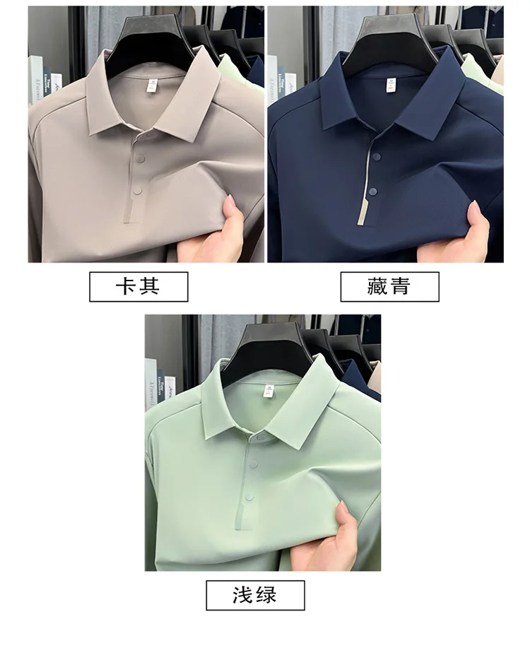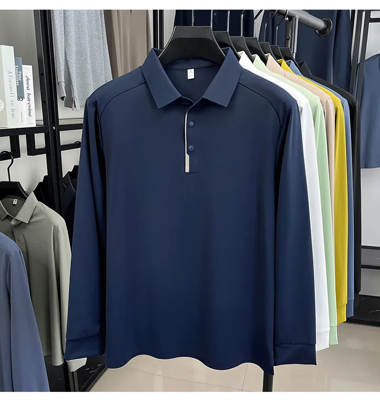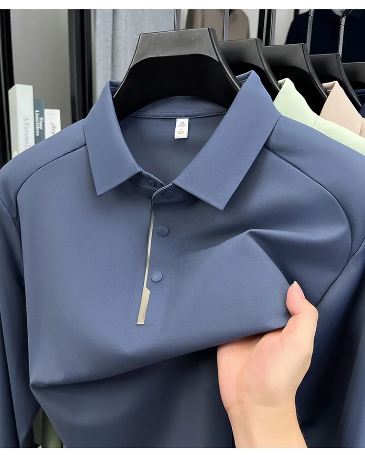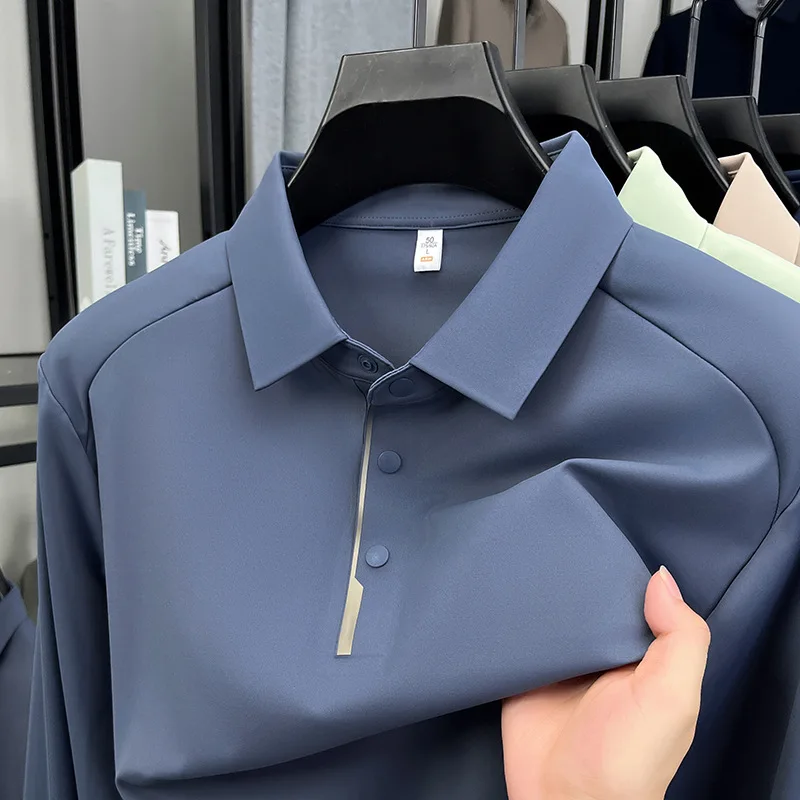New Men's Long Sleeve Polo Shirt, Lapel Design, Business & Premium Sense, Nylon Spandex Seamless High Elastic Base Shirt, Men's T-Shirt Top