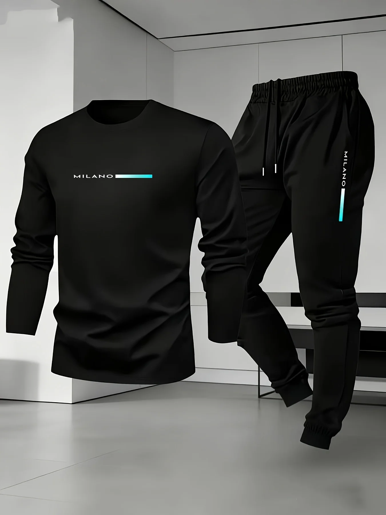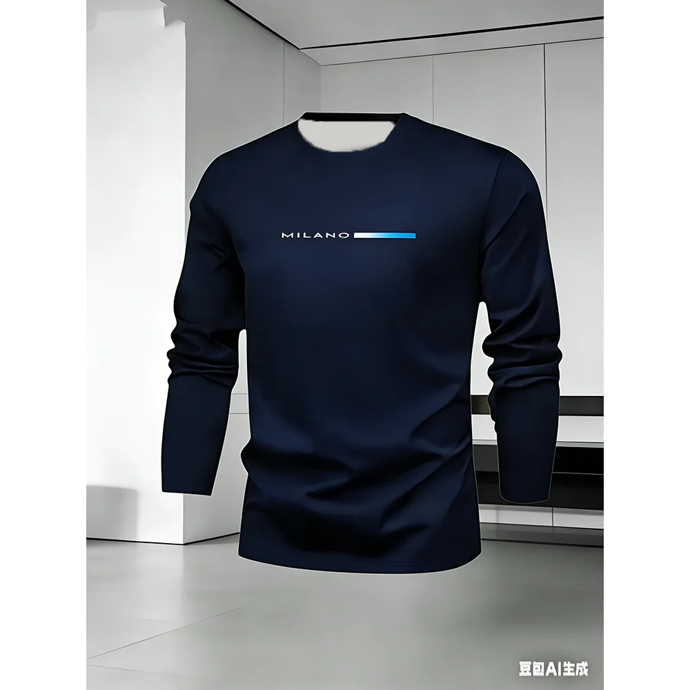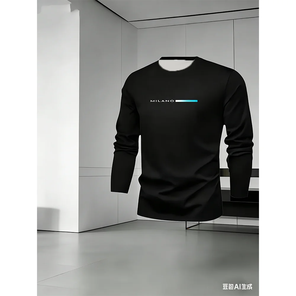 New Men's Sports and Comfortable Casual 2-piece Set Long Sleeved T-shirt Long Pants Minimalist Style Letter Print Holiday Gift