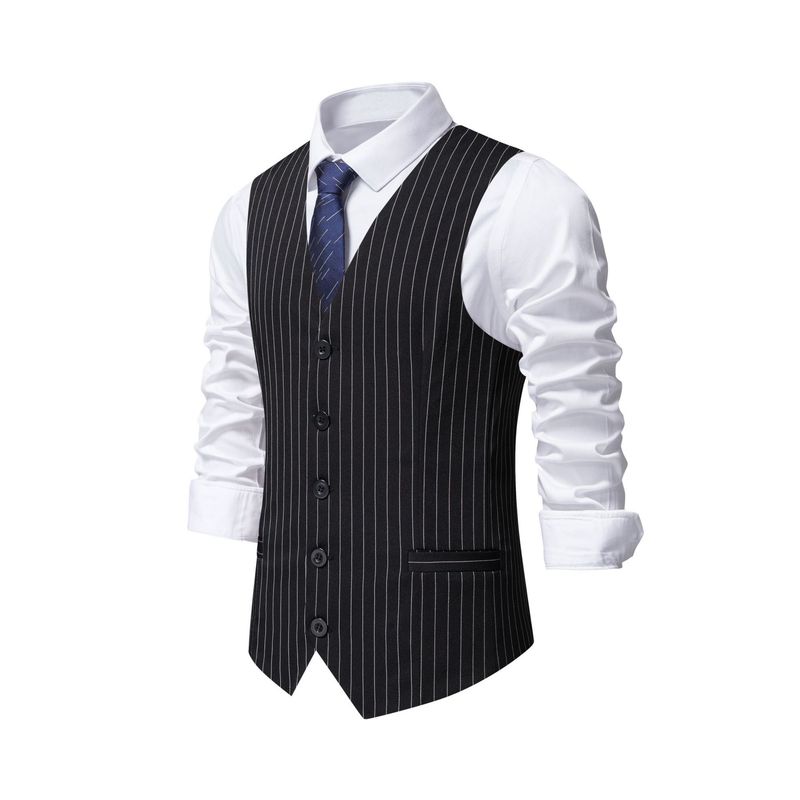 New Men's Striped Suit Vest Fashion Business Formal Wear Black L