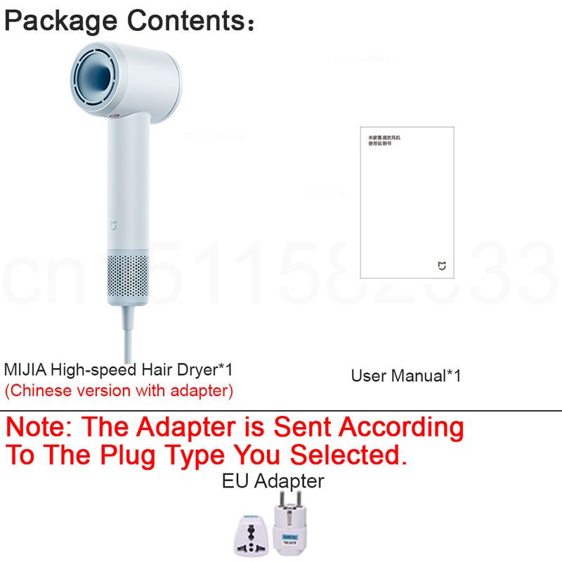 New MIJIA High-Speed Hair Dryer,110000rpm,62m/s Powerful airflow,8 Airflow Mode,347g 4 Color,CN Version With Adapter 220V