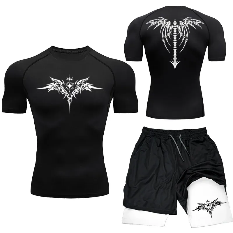 New MMA Boxing Compression Set Sportwear for Men Quick Dry Gym Shorts T Shirt Running Workout Tight Sport Rashguard 2PCS Suit