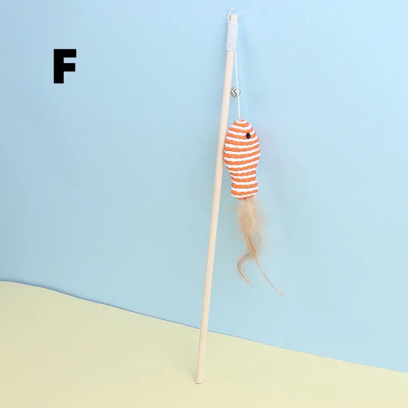 New Mouse Wooden Teasing Cat Rod Cat Toy Pet Supplies Feather Bell Wooden Rod Teasing Cat Stick