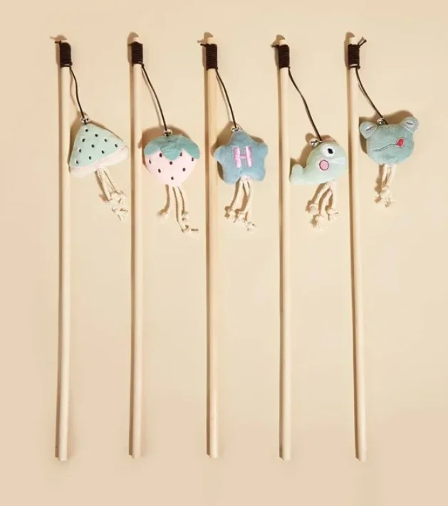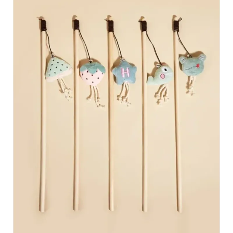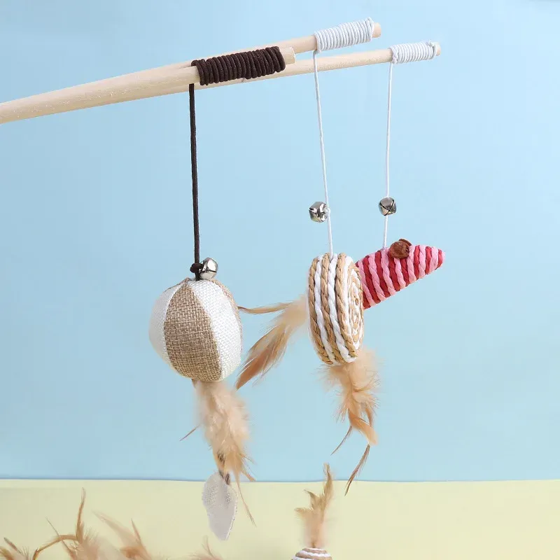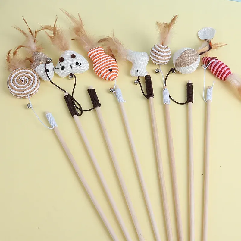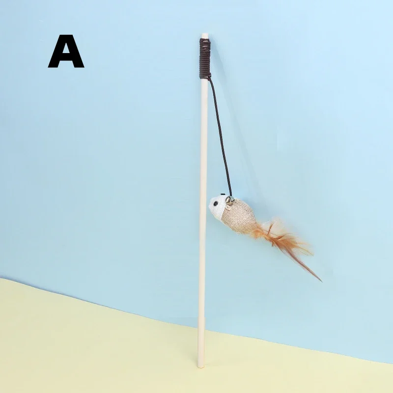 New Mouse Wooden Teasing Cat Rod Cat Toy Pet Supplies Feather Bell Wooden Rod Teasing Cat Stick