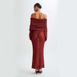 New One-shoulder Knitted Long-sleeved Dress Sexy Beach Holiday Long Dresses Womens Clothing Red S