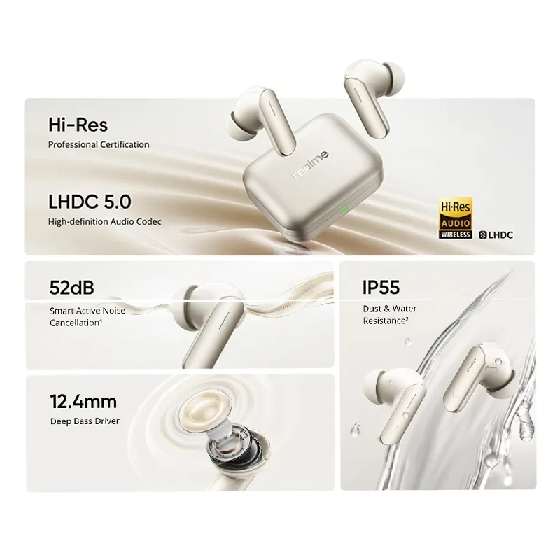 New Original realme Buds Air7 TWS Headphones 52dB Noise Cancellation 52 Hours Battery Life Driver LHDC 5.0 Bluetooth 5.4 IP55