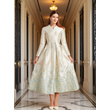 New Plus Size Slimming Dress - Champagne Gold Gradient Jacquard Stand-Collar Long Sleeve Tummy-Control Flared Evening Gown