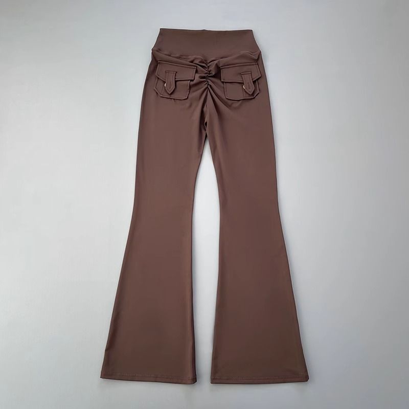 New pocket micro horn yoga pants for hip lifting fitness dance pants quick drying exercise training yoga pants