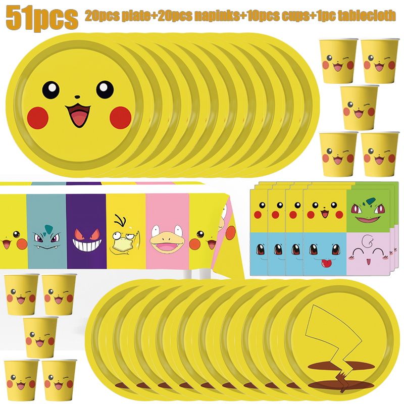 New Pokemon Birthday Party Decorations Kits Pikachu Theme Paper Plates Napkins Cups Balloons Baby Shower for Kids Event Supplies