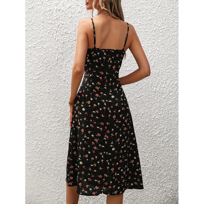 New Polka Dot Print Suspender Dress Summer Sexy Split Long Dresses For Womens Clothing