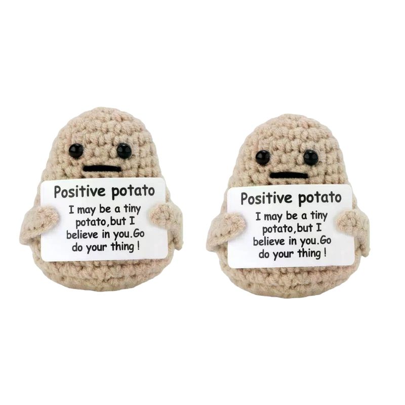 New Positive Energy Potato Hug Pocket Mini Handmade Plush Wool Knitting Doll with Card Funny Christams Gift Home Room Decoration