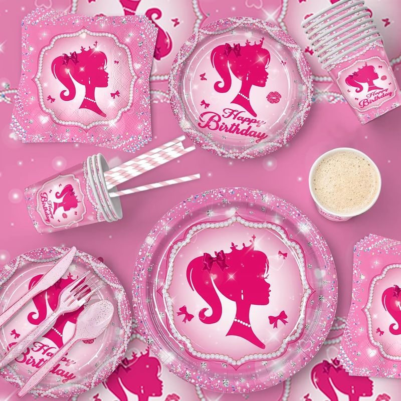 【Applicable Occasions】This pink birthday decorations tableware set is perfect for little girl birthday parties, princess theme,baby shower parties, littel girl and lady girl theme party decoration.