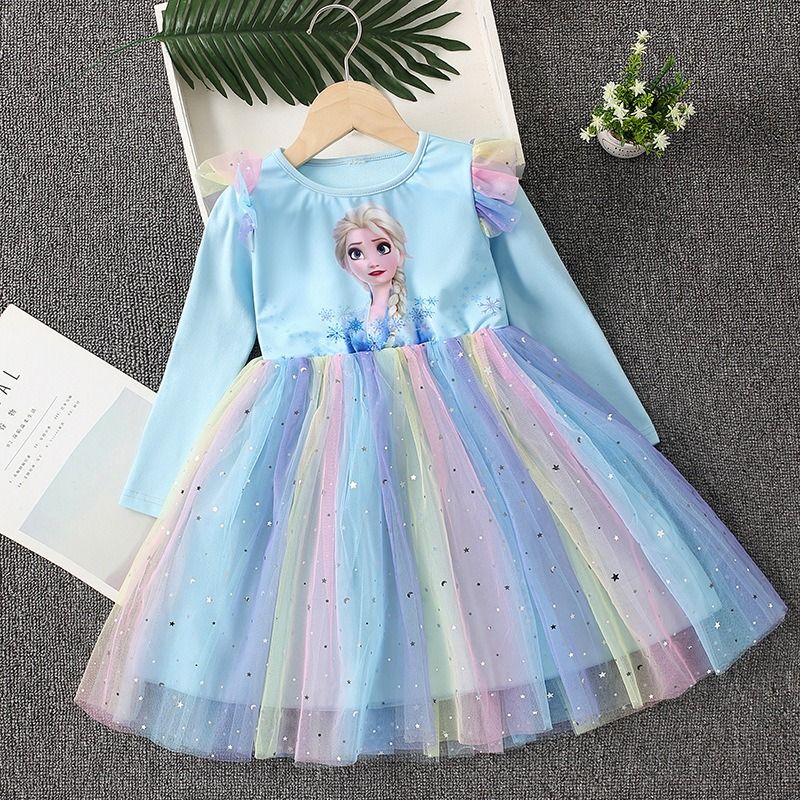 New Princess Dress Girls Dress Long-sleeved For Children's Party Clothes Elsa Frozen Dress Spring Autumn Kids Dress 2-9Y