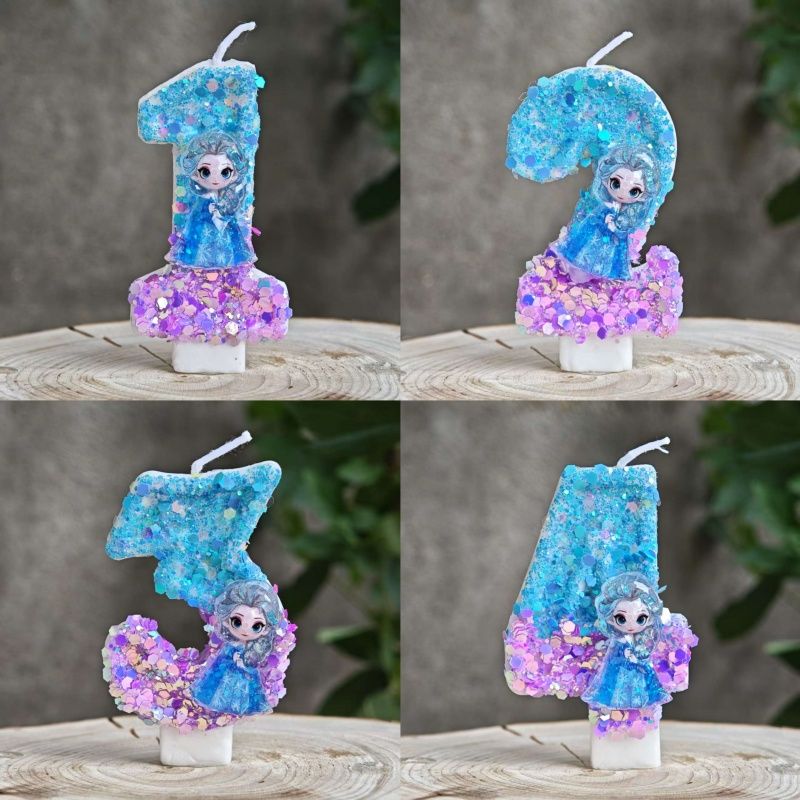 New Princess Frozen Cartoon Theme Cute Digital Birthday Candles Holiday Party Creative Cake Sequin Candles Baby Shower Gift