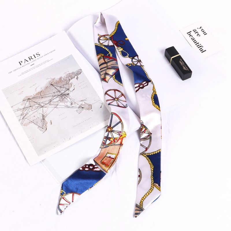 New Print Flower Small Scarf for Women Handle Bag Ribbons Brand Fashion Head Scarf Small Long Skinny Scarves Wholesale Headbands