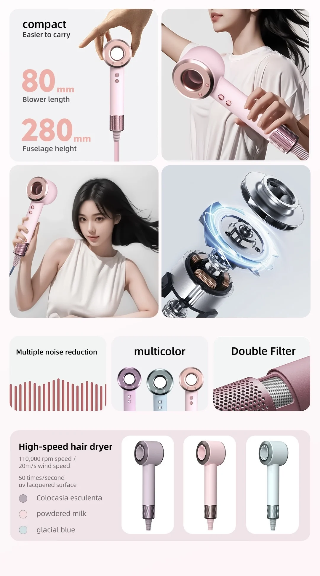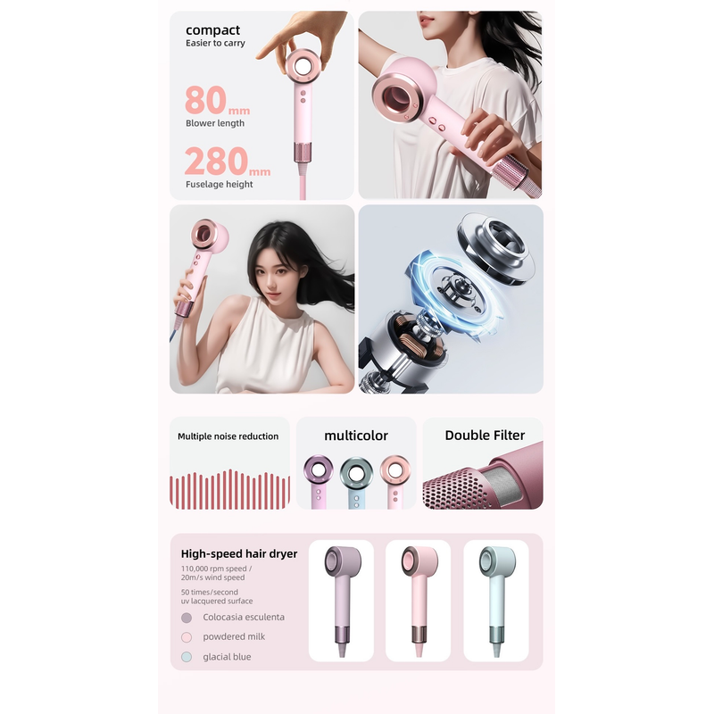 Experience rapid drying with the RANXUN hair dryer's 110000rpm motor, ensuring salon-quality results at home.