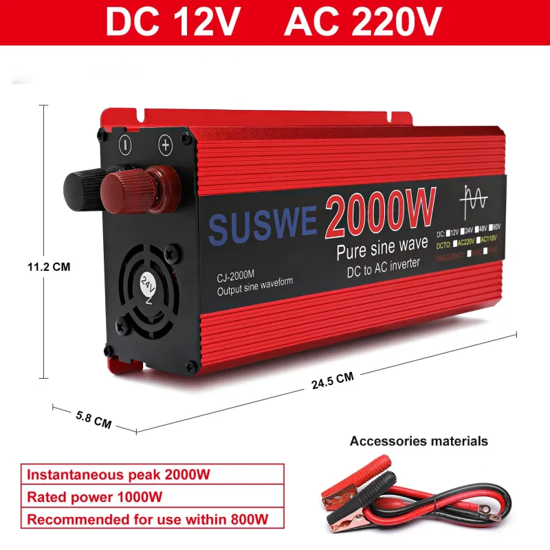NEW Pure Sine Wave Inverter 1000W 2000W 2200W 3000W DC 12V 24V To AC 220V Voltage 50/60HZ Solar Car Inverters